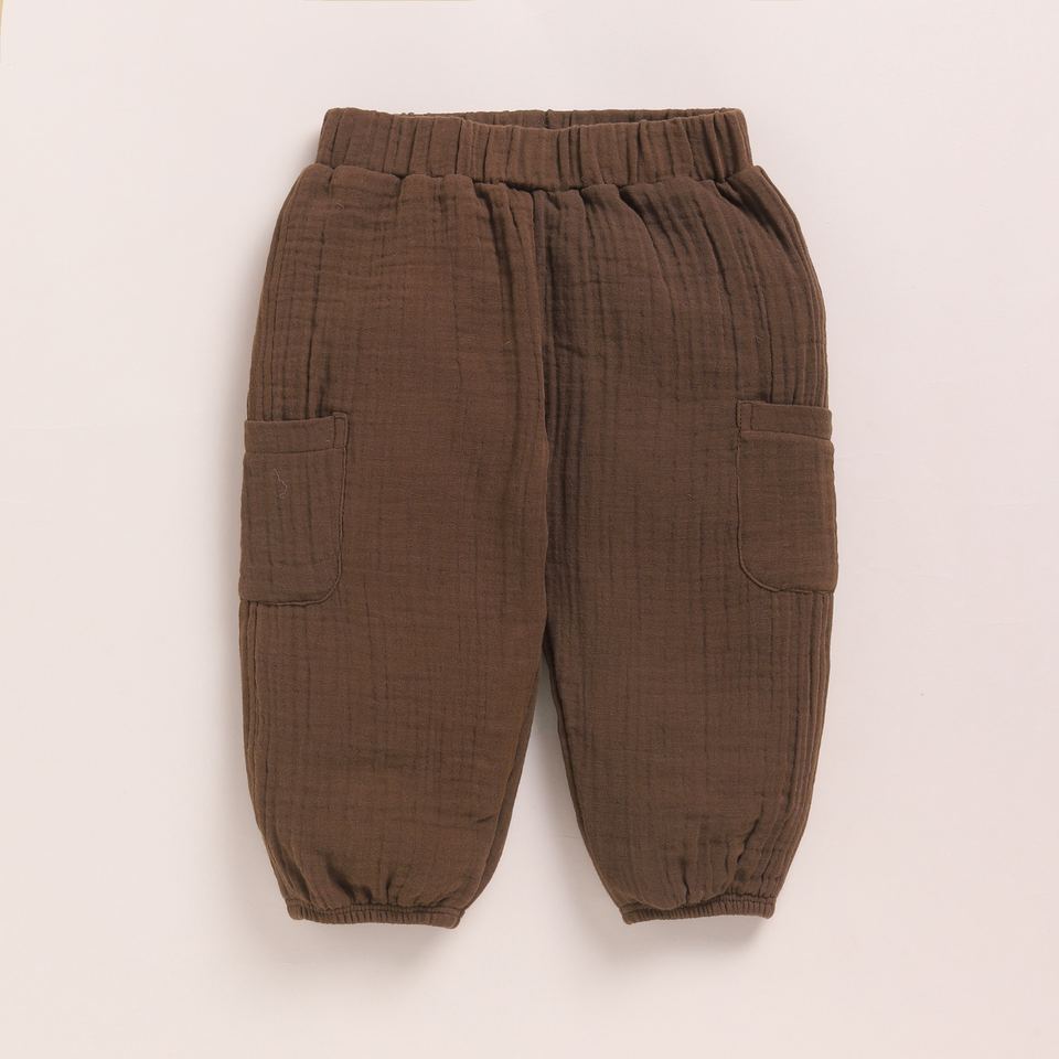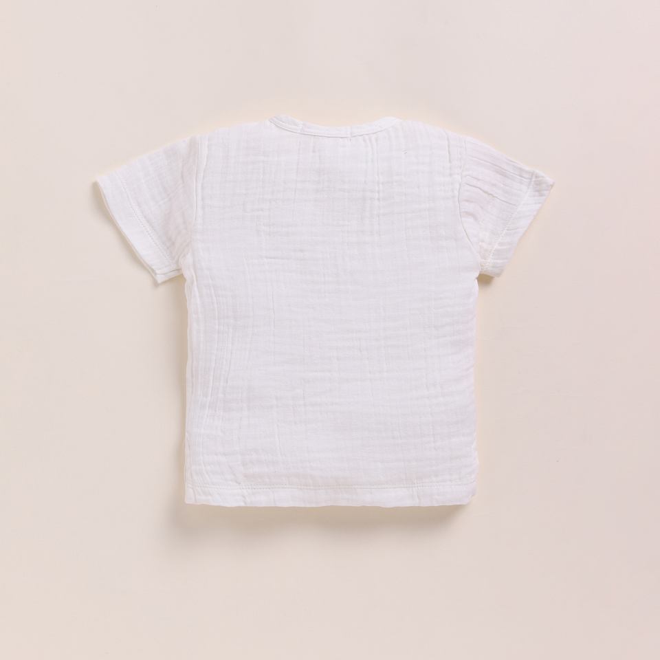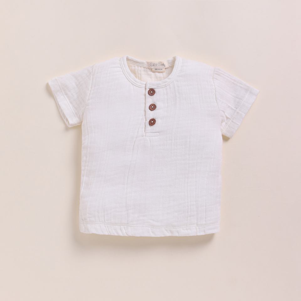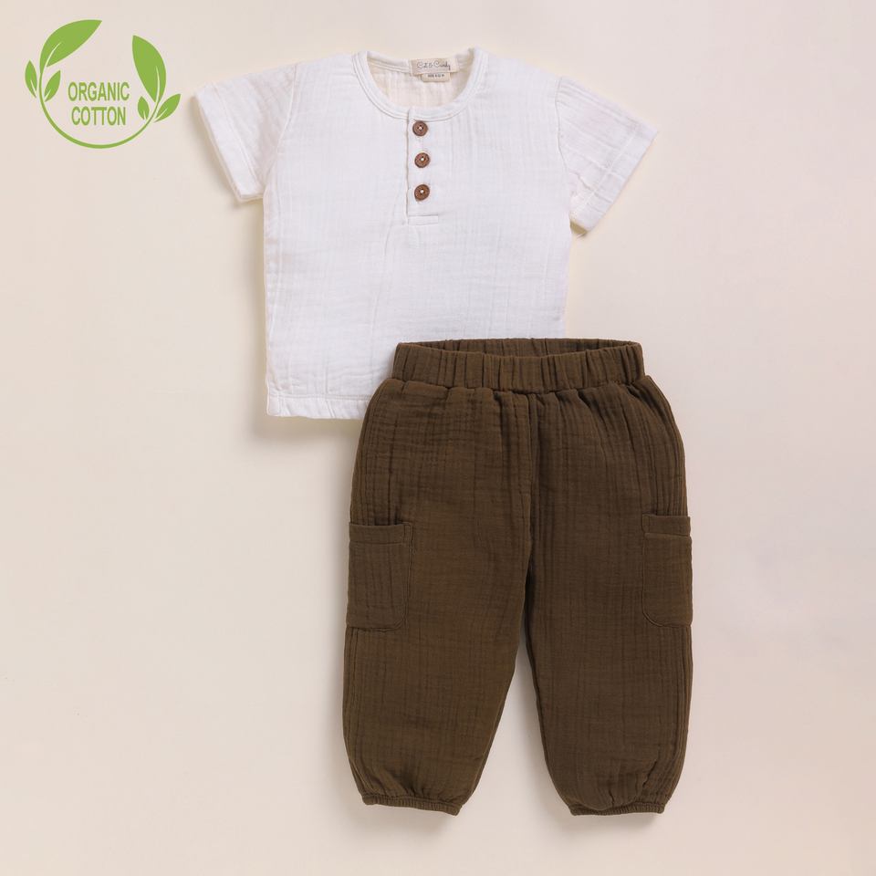 Premium Quality Organic Muslin Short Sleeve Henley T-shirt With Lounge Pant Set - Milk + Cocoa Whisper