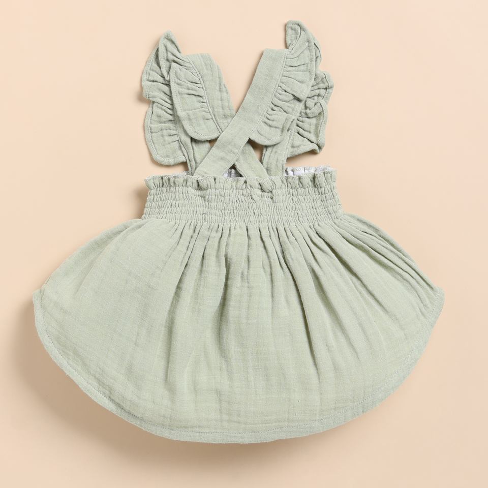 Organic Muslin Sleeveless Frill Top for Baby Girls Premium Quality Sage Color Shirt & Top