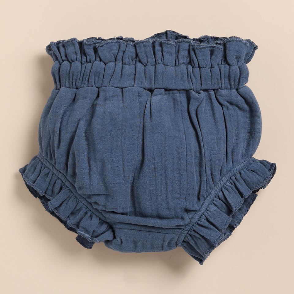 Premium Quality Organic Muslin Sleeveless Frill Top with Bloomer Set Navy Baby Clothing