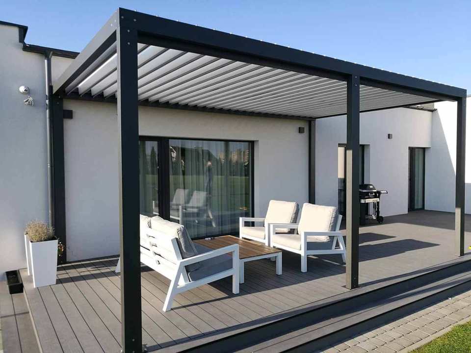 Premium Quality Outdoor Motorized Aluminum Louvered Roof Waterproof Dimmable Rgb Lighting Modern Bioclimatic Pergola
