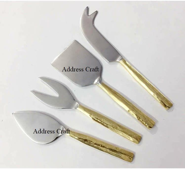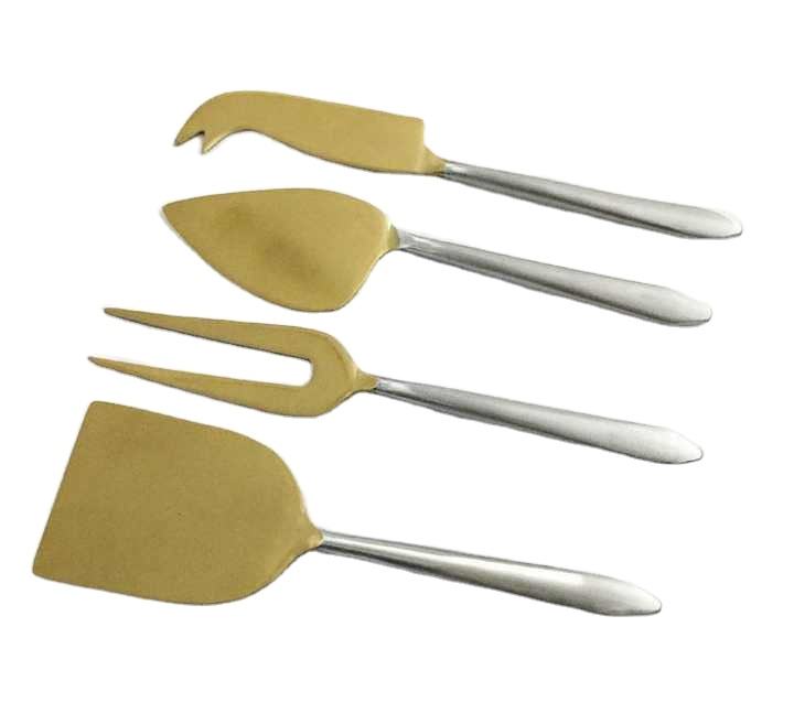 Premium Quality PVD Gold 18/8 Stainless Steel Cheese Cutting Tool Steel Cutlery Cheese Set of 4-Pcs Silverware Metal Cutlery Set