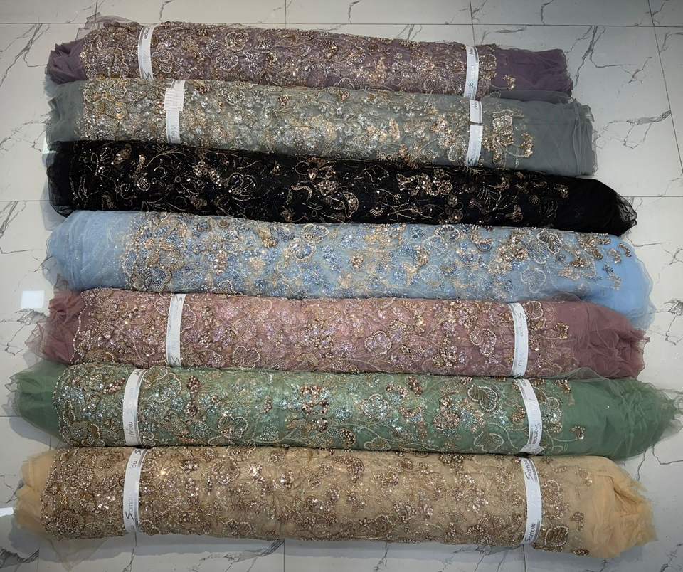 Premium Quality Partywear Net Fabric with Sequin & Floral Embroidery for Sarees Dresses & Gowns Multi Colors