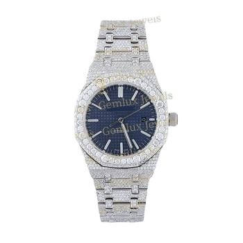 Premium Quality Pass Diamond Tester Blue Dial D VVS Fully Iced Out Moissanite Diamond Full White Hip Hop Auto Date Watch Man's