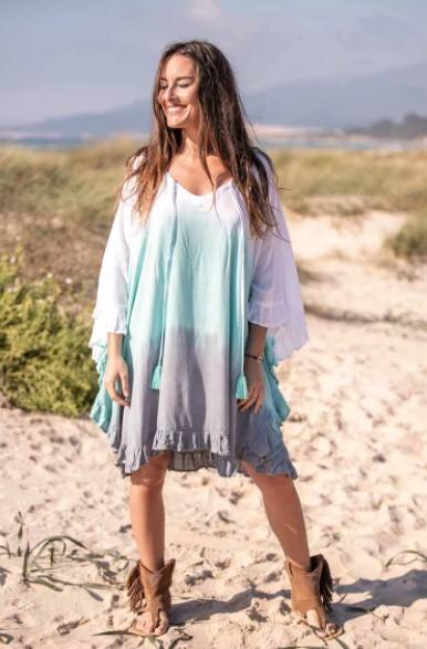 Premium Quality Pink Ombre Kaftan Dress Elegant Bohemian Beach Cover Poncho Hand Tie Ruffle Hem Cute Plus Size Breathable Midi