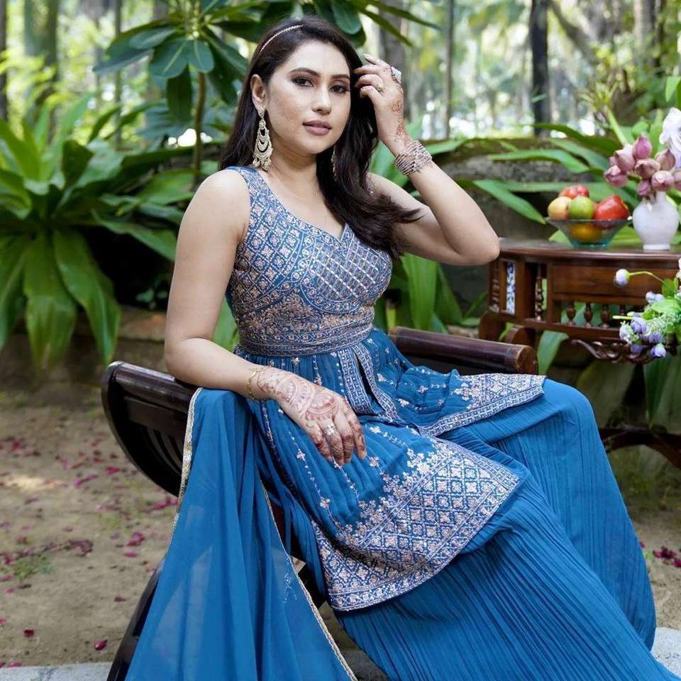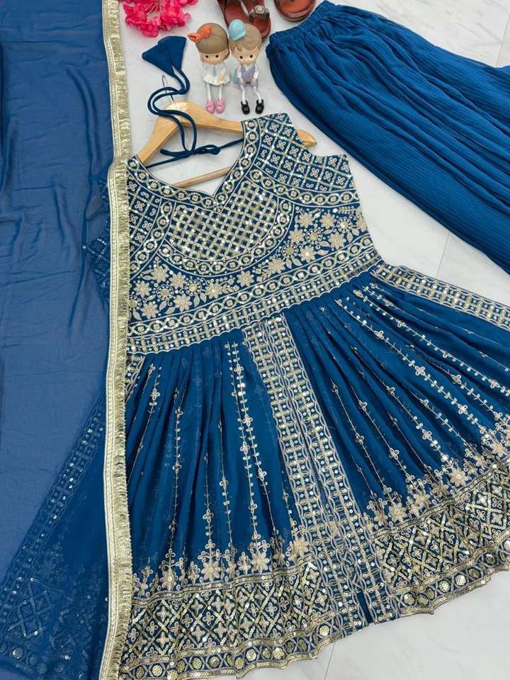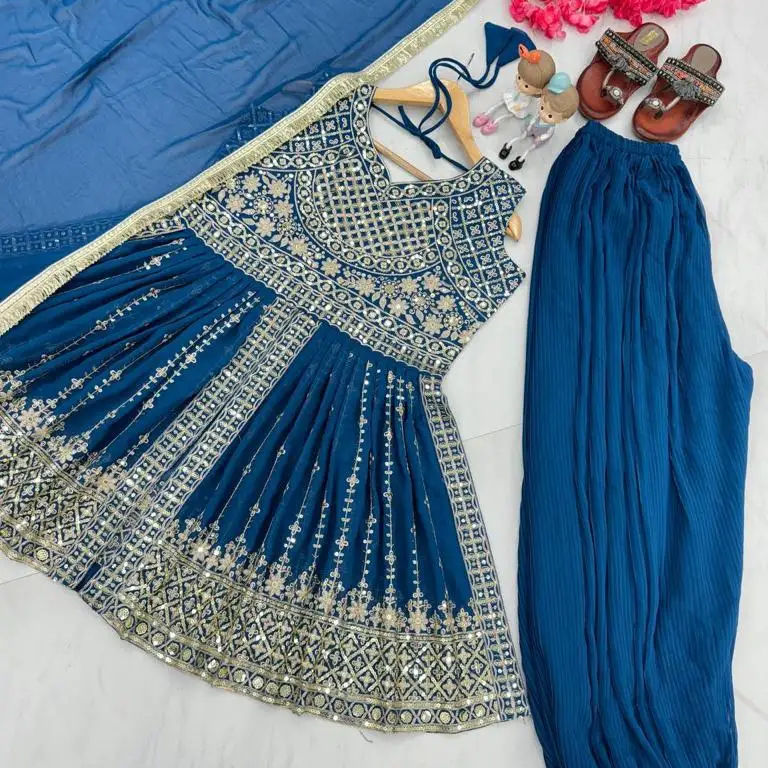 Premium Quality Plazo Kurti Set Faux Georgette With Heavy Embroidery Work With Daymond Hand Work With Extra Plane Fabric Sleeve
