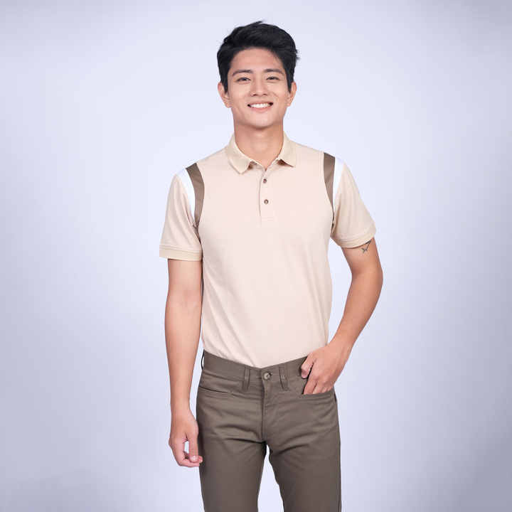 Product Name:Polo Shirt with Contrast Stripes on Knitted Collar & Cuffs