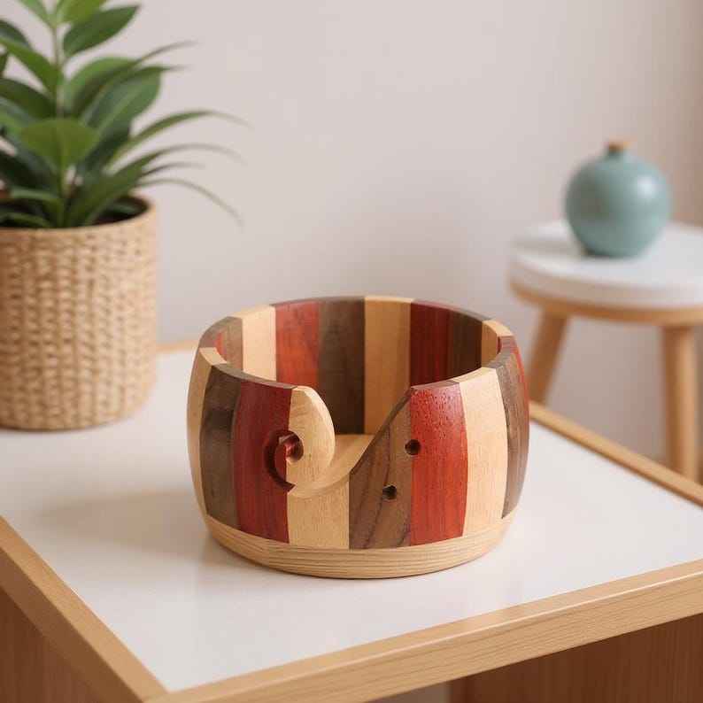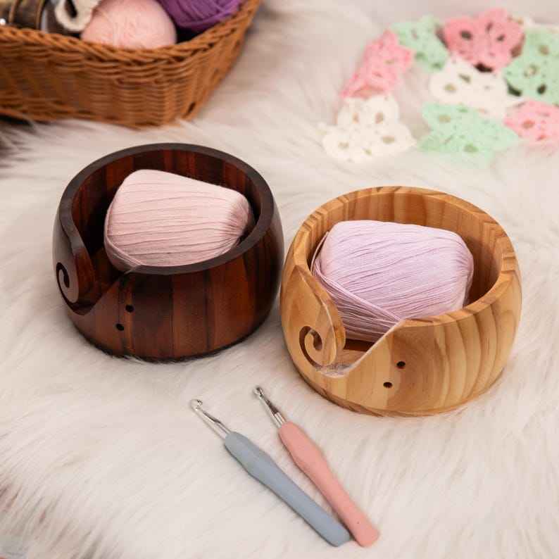 Premium Quality Portable Simple Wooden Crochet Yarn Bowl | Handcrafted Solid Wood Yarn Holder for Tangle-Free Knitting