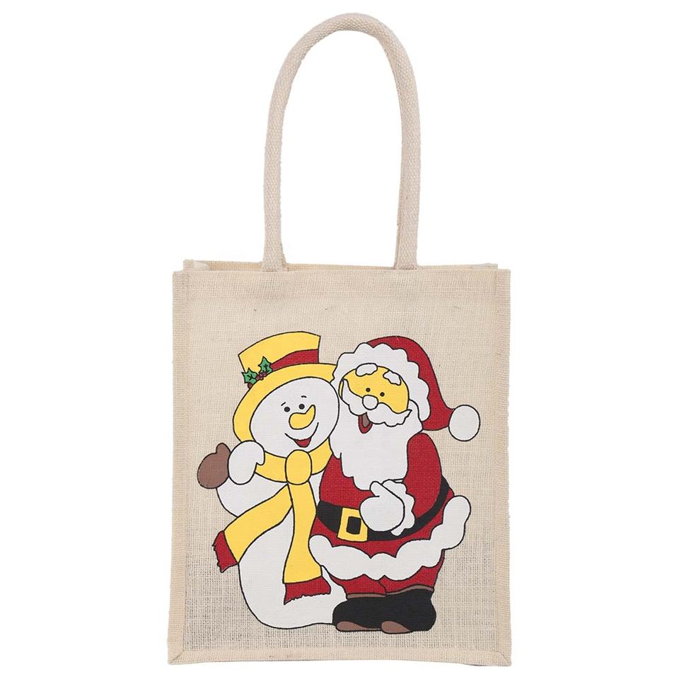 Premium Quality Portable Waterproof Jute Grocery Bag Reusable Foldable Shopping Tote Bag with Santa Claus Printed Bags