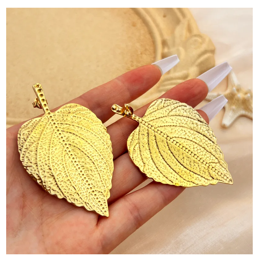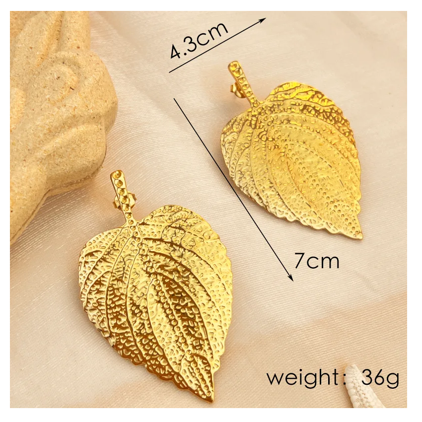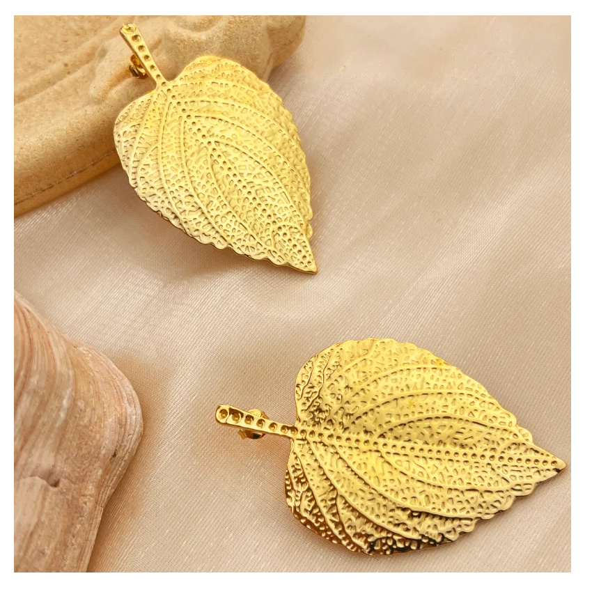 Premium Quality Product Trendy Leaf Designer Gold Plated Jewelry Stainless Steel Earrings Women for Holiday