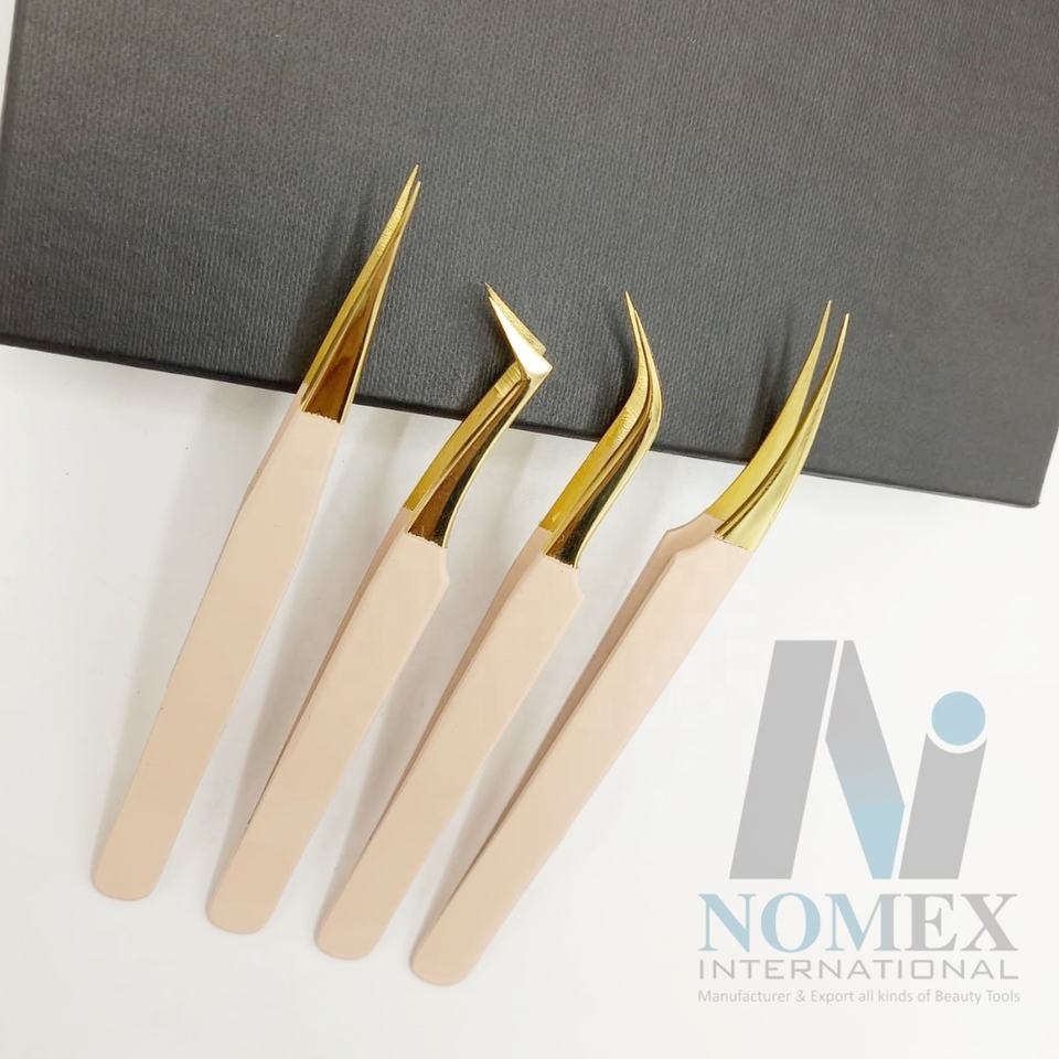 Premium Quality Professional Stainless Steel Eyelash Extension Tweezers Anti-Static Durable Diamond Texture Grip Sharp Points