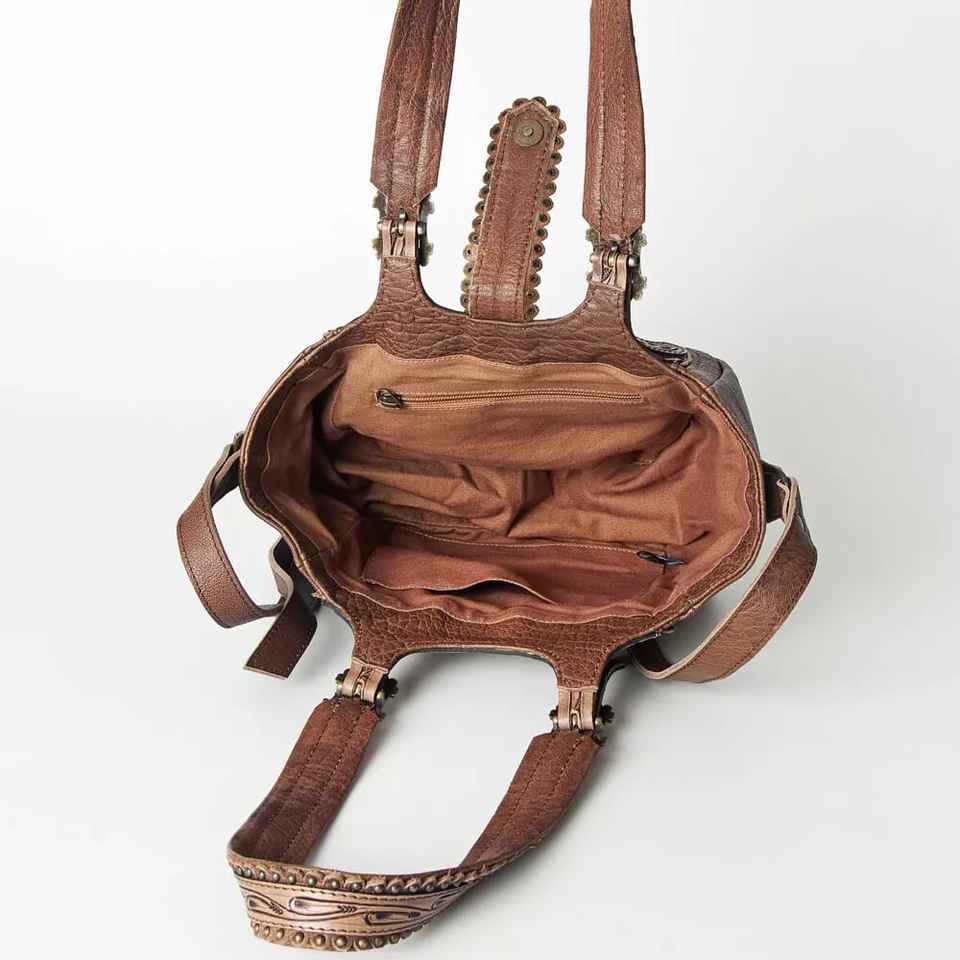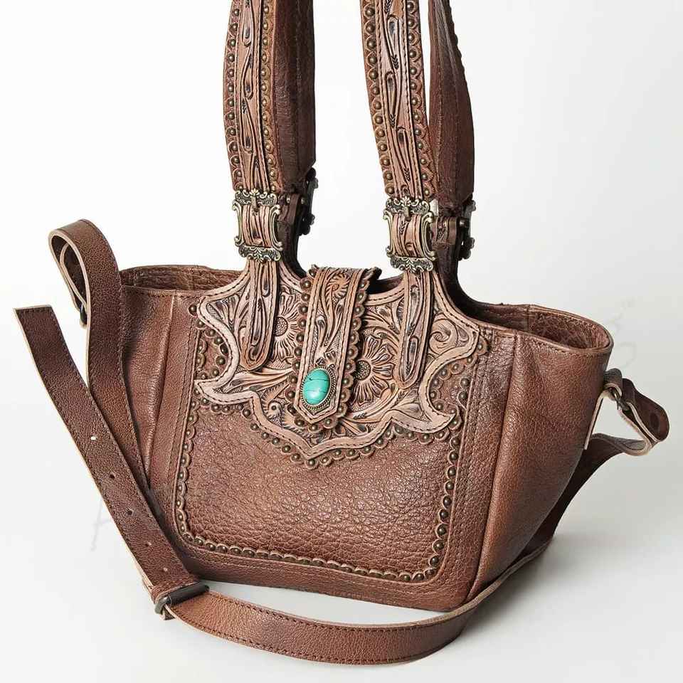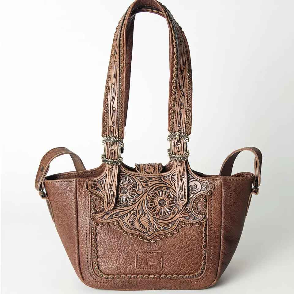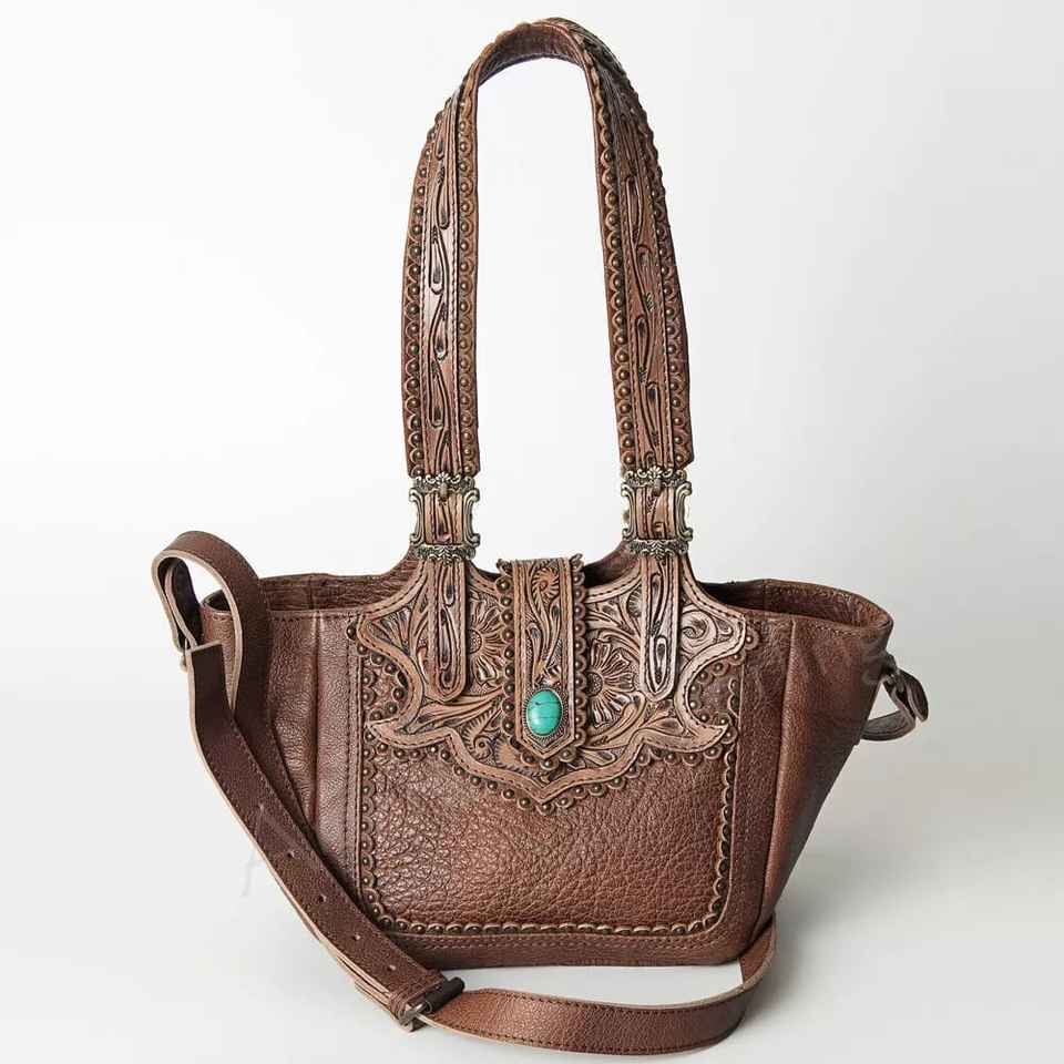 Premium Quality Real Leather Western Tote & Messenger Bag Zipper Closure Flowers High Quality Genuine Leather Women's Handbag