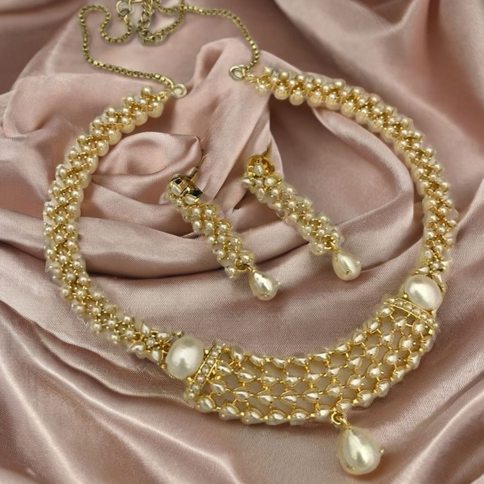 Premium Quality Real Pearls Gold Plated Beautiful CZ Necklace Set With Earrings for Engagement or Wedding For Women And Girls