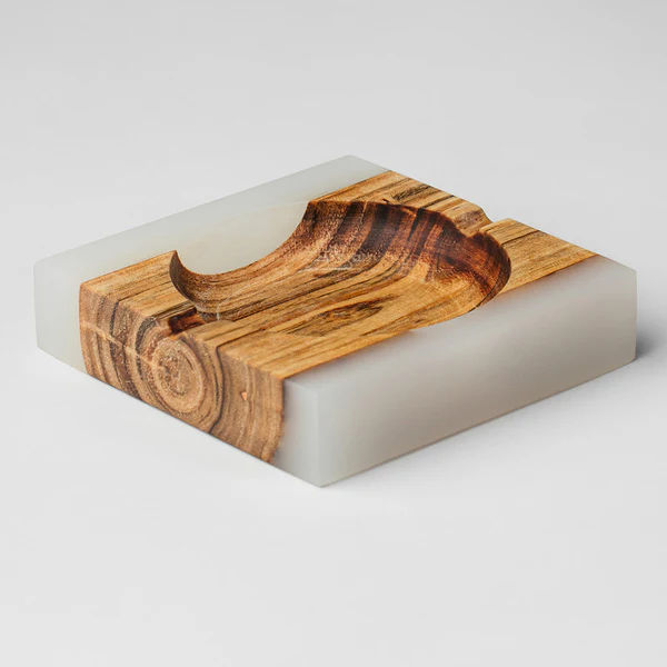 Wholesale Premium Quality Resin Acacia Wood Classic Portable Square Ashtray for Indoor/Outdoor Use Smooth Finish for Smoking