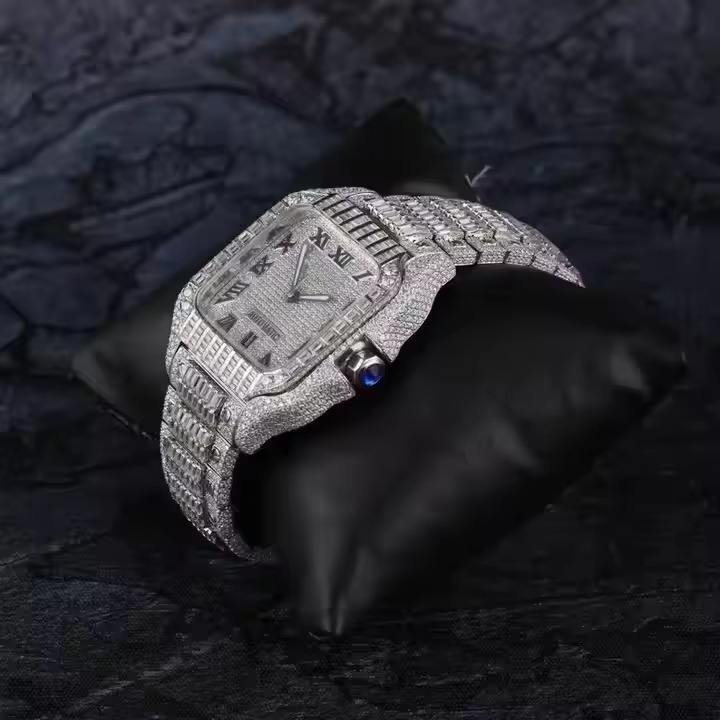Premium Quality Roman Dial Moissanite Diamond Watch 40mm Square Stainless Steel Automatic Band Hip Hop Luxury Style