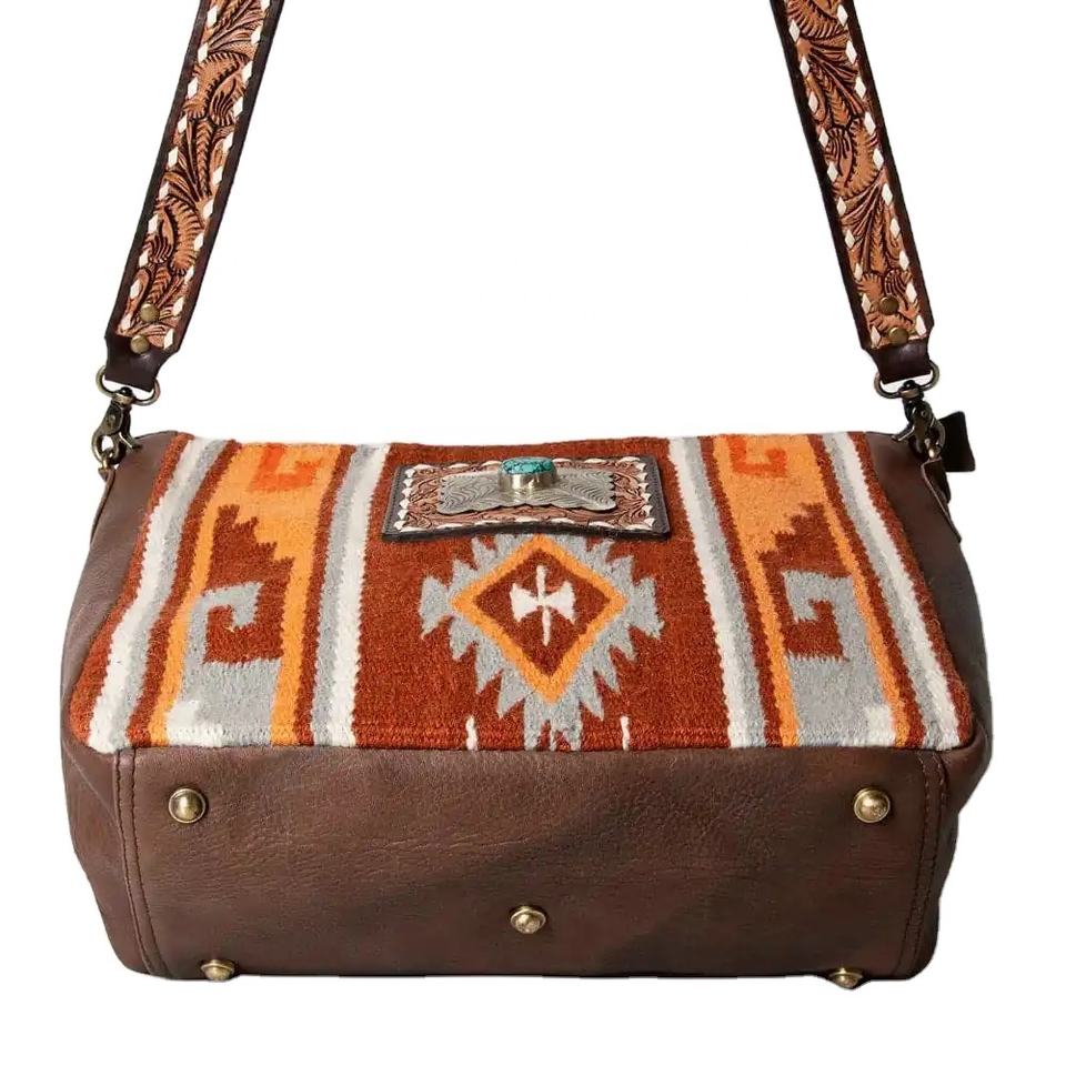 Premium Quality Real Leather Saddle Blanket Tote Bag Floral Hand Tooling Strap Autumn Custom Zipper Bohemian Style Women's