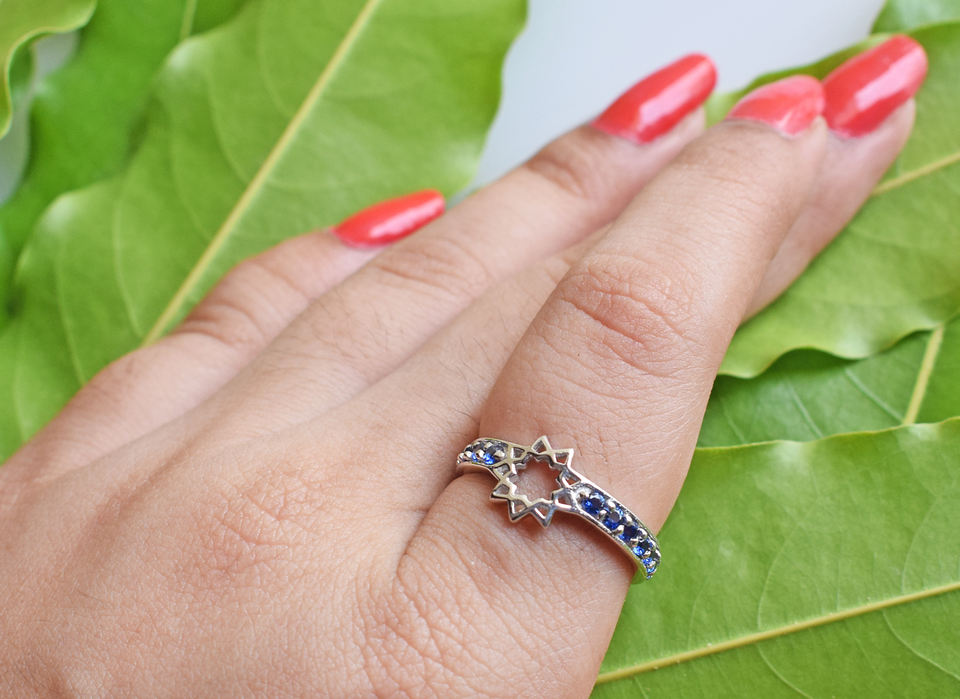 Premium Quality Solid 925 Sterling Silver Blue Sapphire Gemstone Star Shape Eternity Band Ring Dainty Fine Women's Jewelry