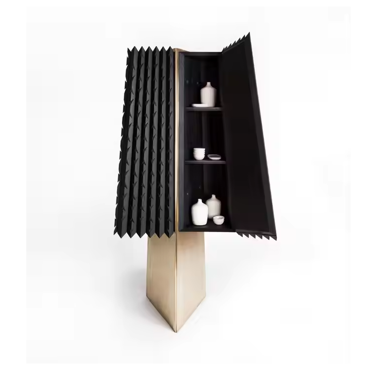 Premium Quality Solid Wood Bar Cabinet with Unique CNC Design Black Gold Finish for Home Bar Cocktail Furniture