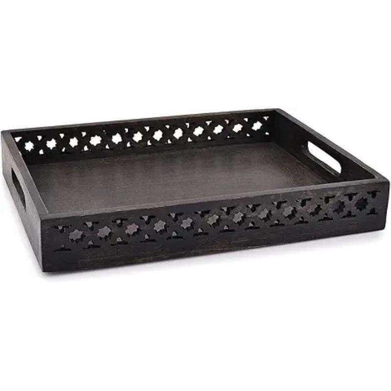 Premium Quality Square Mango Wood Ottoman Serving Tray Natural Wood Finished Tray for Breakfast Tea & Coffee Table from India