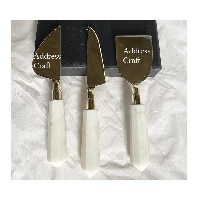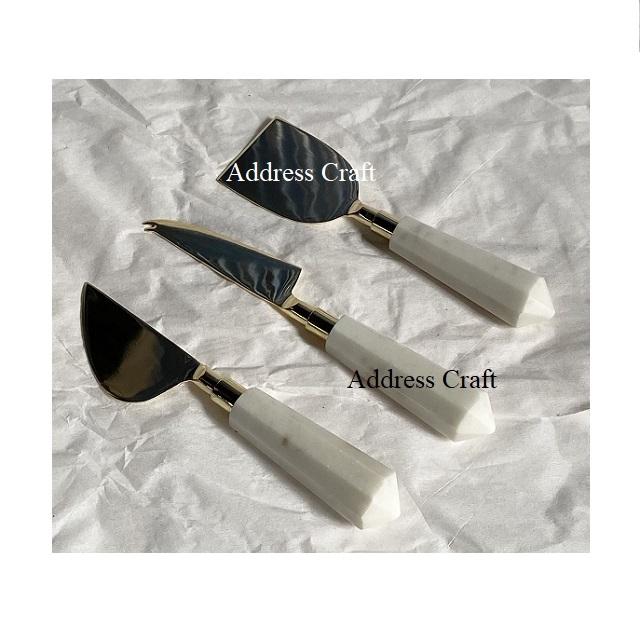 Luxury Stylish Stainless Steel Cutlery Set With Marble Stone Handle Vintage Style Cheese Knife Set Tableware Custom Kitchen Tool