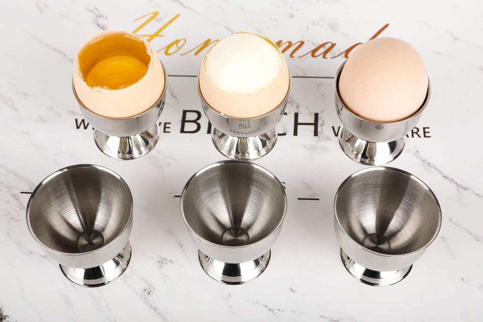 Premium Quality Stainless Steel Egg Cup Holder Stand Metal Breakfast Kitchen Gadgets Tray for Hard Boiled Eggs