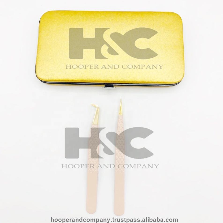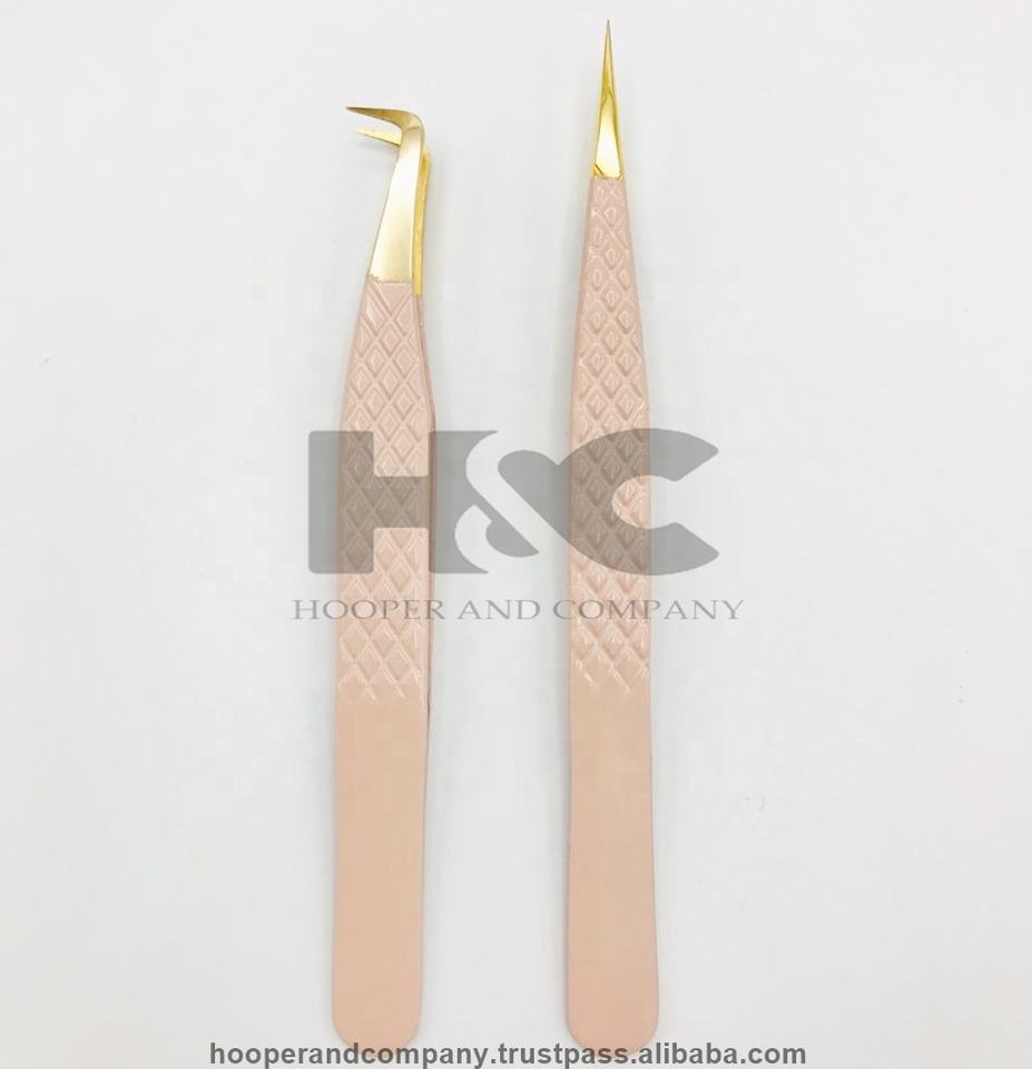 Premium Quality Tweezers mink Stainless Steel Eyelash Extension Tweezers Volume Anti-Magnetic Gold Peach Diamond Grip Logo