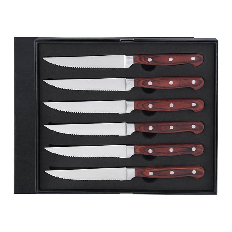 Premium Quality Stainless Steel Steak Knife Set of 6 Modern Wooden Handle Eco-Friendly Custom Logo Dishwasher Safe Chef Knives