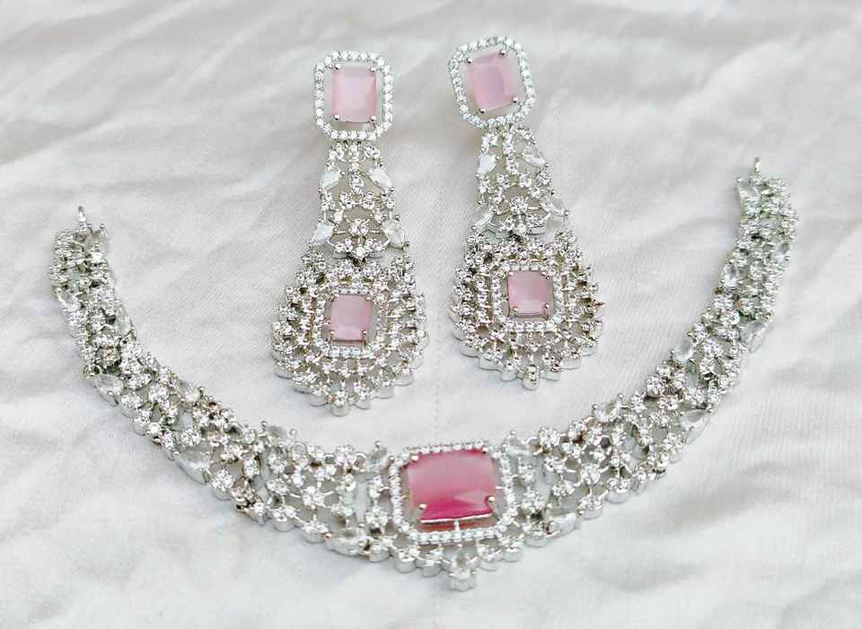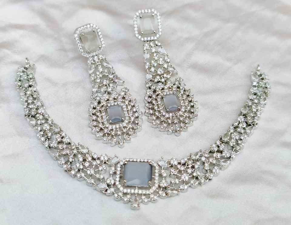 Premium Quality Star Cut CZ Necklace Set For Women AD Jewelry Luxury Minimal Wear Necklace With Earrings Party Wear Set