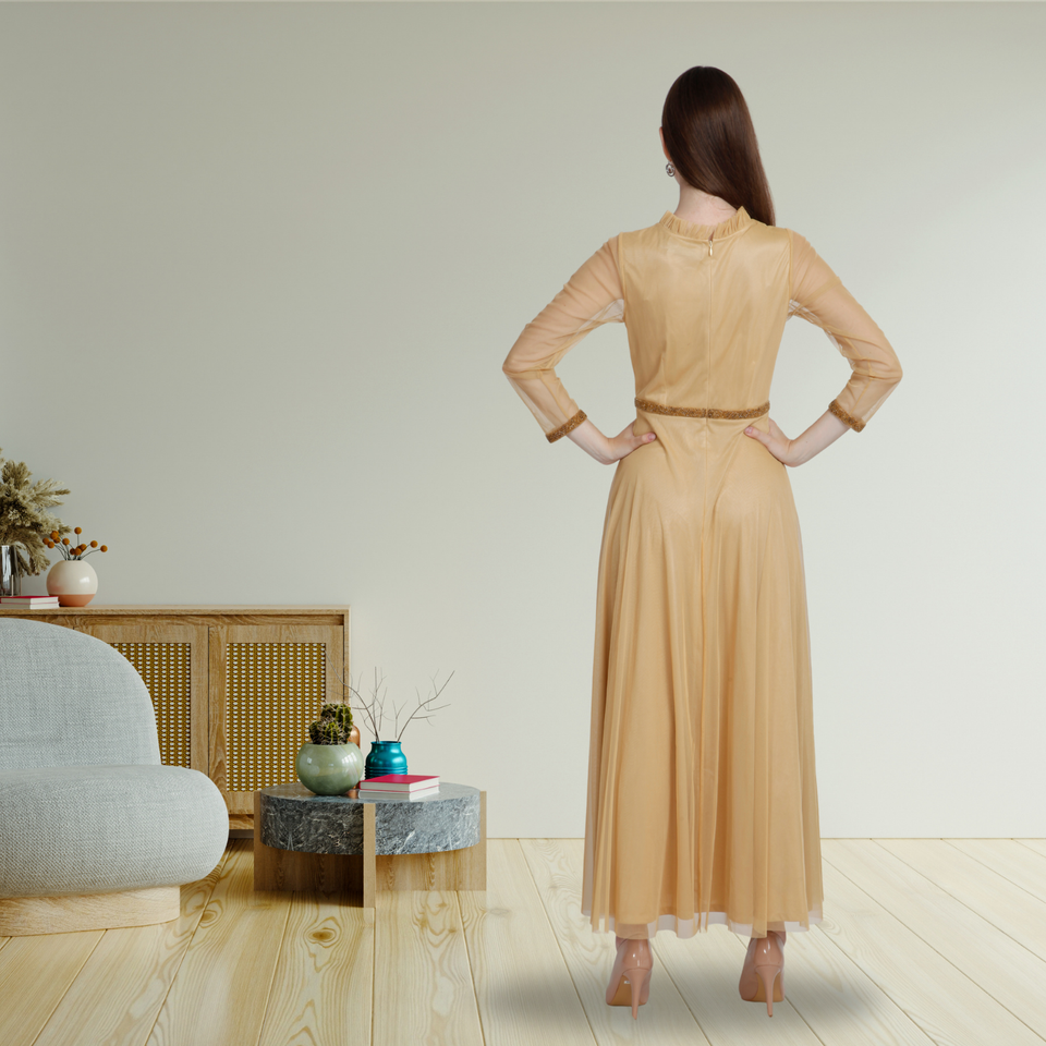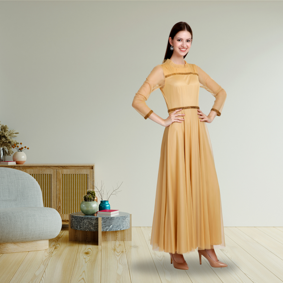 Premium Quality Stitch Women Hand Beaded Maxi Dress with Lightweight Fabric Shiny Look for Formal Party and Event Use