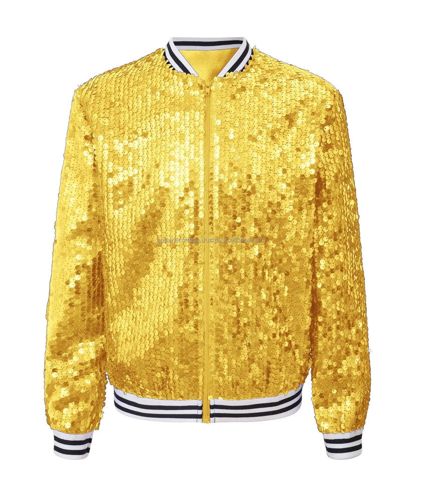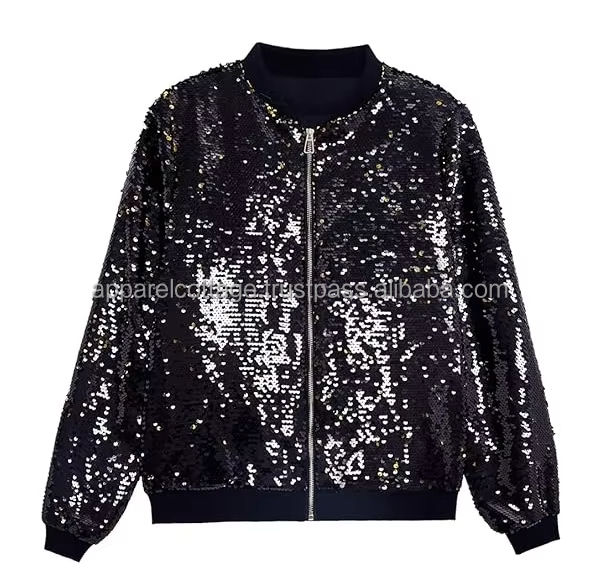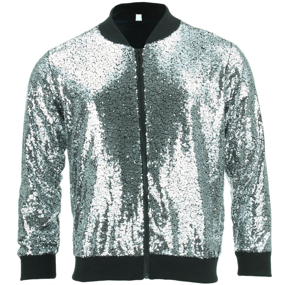 Premium Quality Street Fashion Zip up Flexible Bottom Two Pocket Style Holographic Sequin Dancing Wear Unisex Bomber Jackets