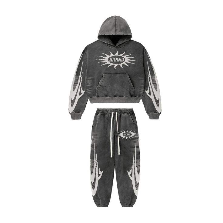 Premium Quality Streetwear Sun Faded Acid Washed Oversized High Quality Unisex Tracksuit With Customized Screen Pritned Logo