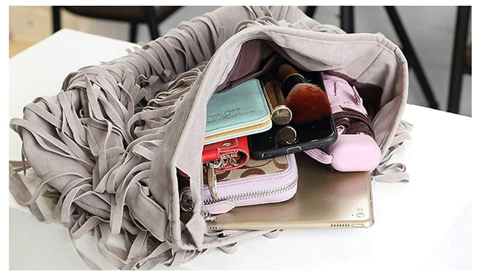 Premium Quality Suede Leather 2 Layer Fringed Messenger Sling Bag Customized Logo Zipper Closure Crossbody Fashionable Women Bag