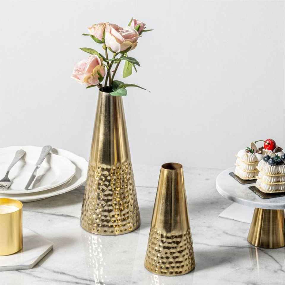 Premium Quality Tapered Cone Desk Vase Modern Iron Finish Handmade Flower Holder Wedding Living Room Wholesale Flower Pot