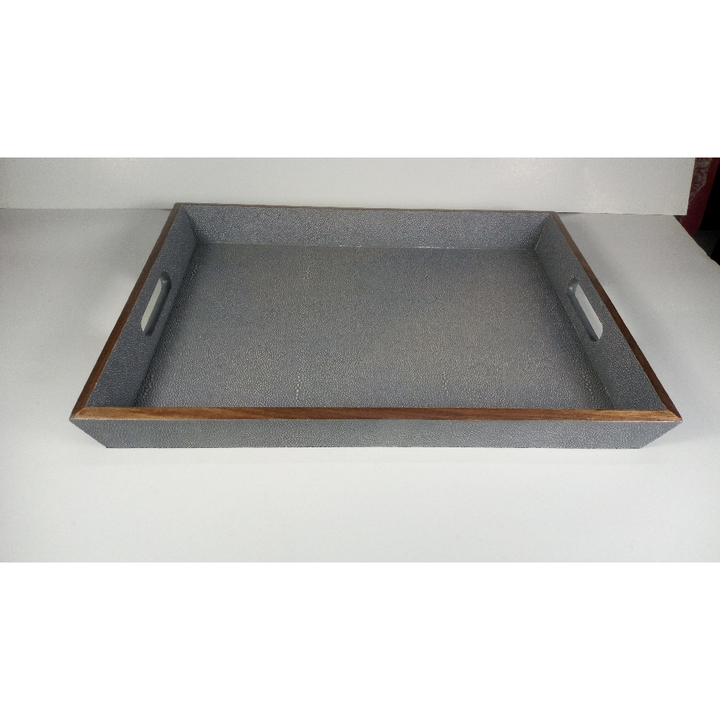Premium Quality Taupe Color 0.53x0.37x0.06 Home Decoration Veneer Edges Tampered Faux Shagreen Tea Tray from Vietnam