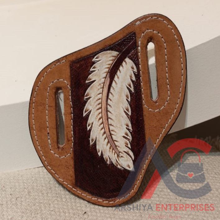 Premium Quality Tooled Leather Feather Hunting Knife Sheath Personalized Belt Trapper Knife Sheath Genuine Leather Cover Holster