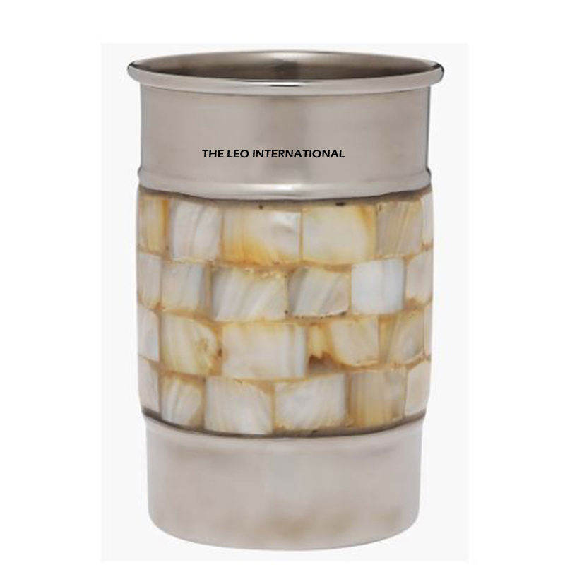 Premium Quality Tooth Brush Holder Mother Of Pearl Storage Bathroom Accessories Shiny Stainless Steel Metal