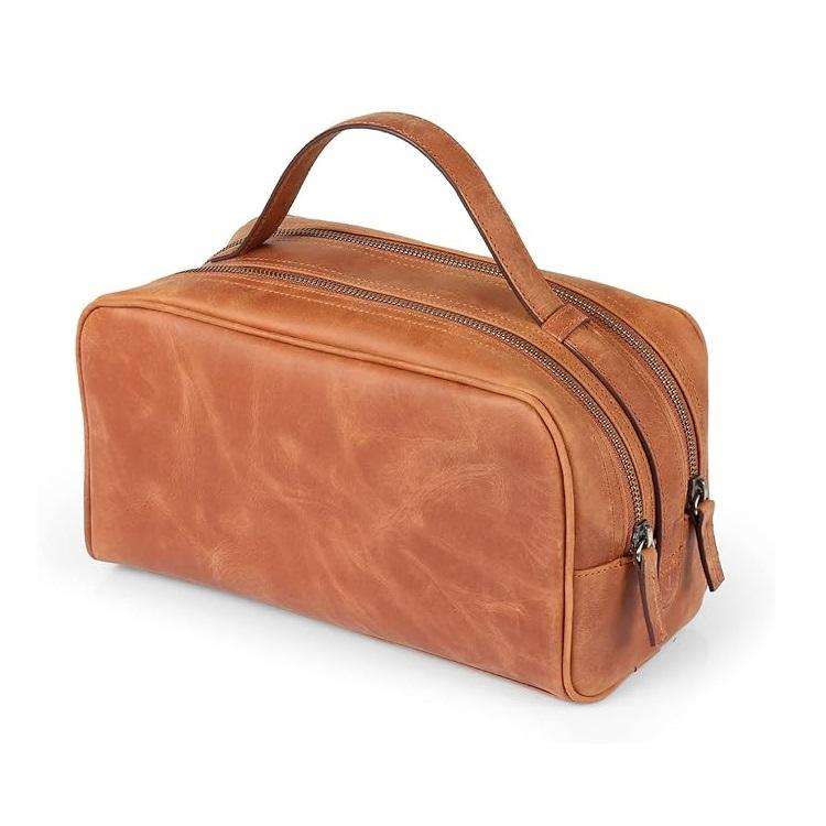 Premium Quality Luxury Travel Makeup Jewelry Organizer Genuine Leather Cosmetic Bag Zipper Spacious Design Portable Women