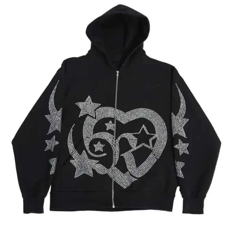 Premium Quality Trending 100 Cotton Zip up Hoodies Men's Custom Rhinestone Hoodie Unisex Manufacturer From Pakistan