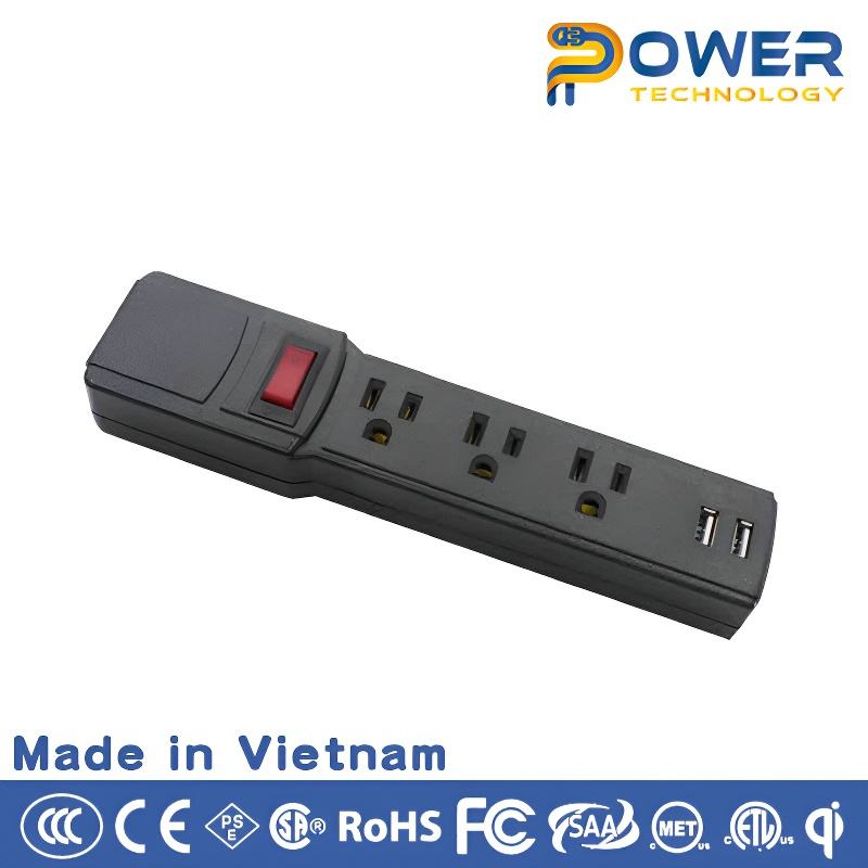 Premium Quality US Standard Power Strips Recessed Design Wall Socket Extension Cord for Desk Table Sofa-5m Cable Length