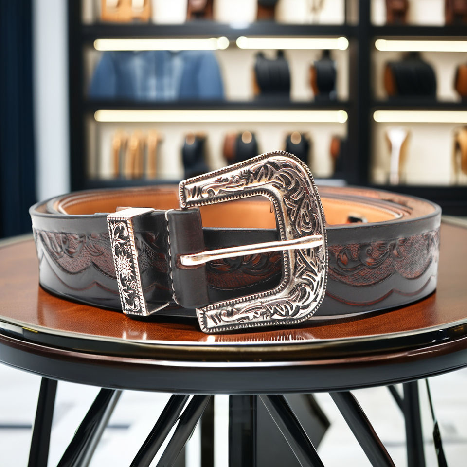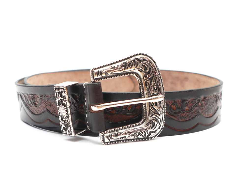 Premium Quality Unisex Top Grain Leather Western Belts Hand Tooled Engraved Design Custom Length 1.5 Inches Direct Factory