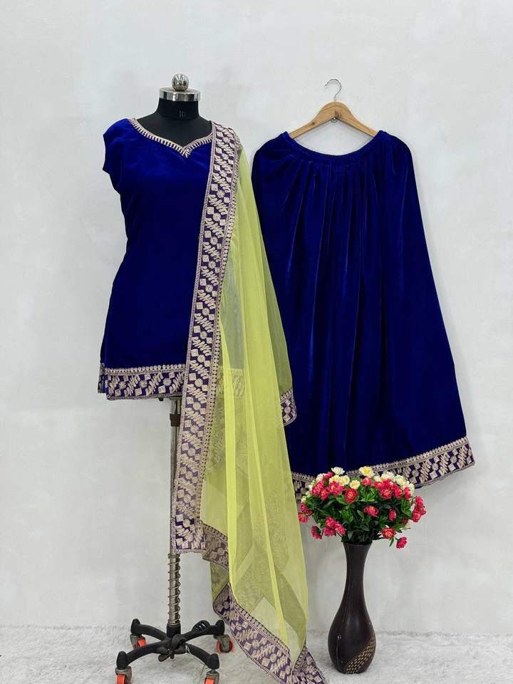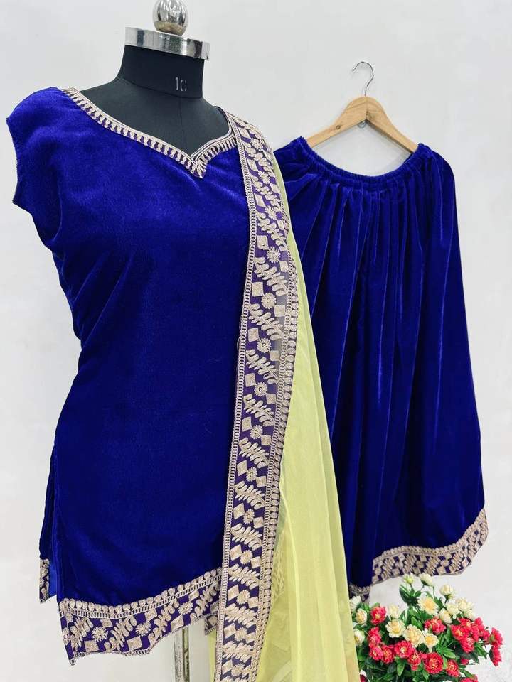 Premium Quality Velvet Ladies Sharara Suit with Stylish Long Top Perfect for Weddings and Celebrations Available for Sale