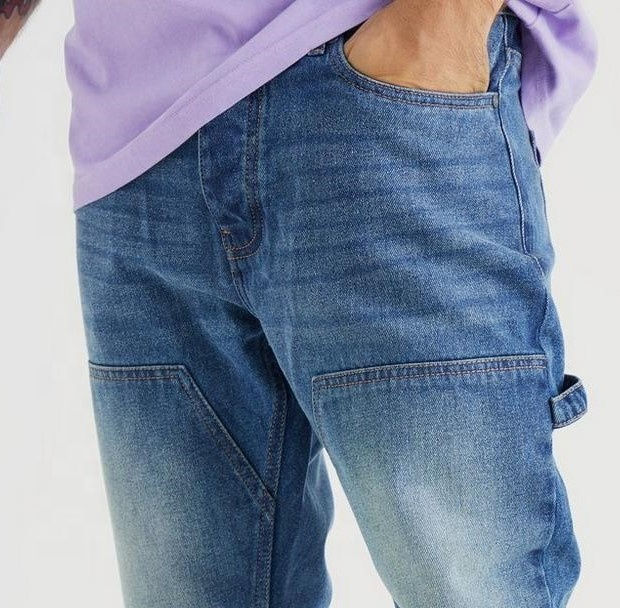Premium Quality Vintage Blue Streetwear Rigid Baggy High Street Stretchable Flare Carpenter Jeans for Tall Men OEM Serviced