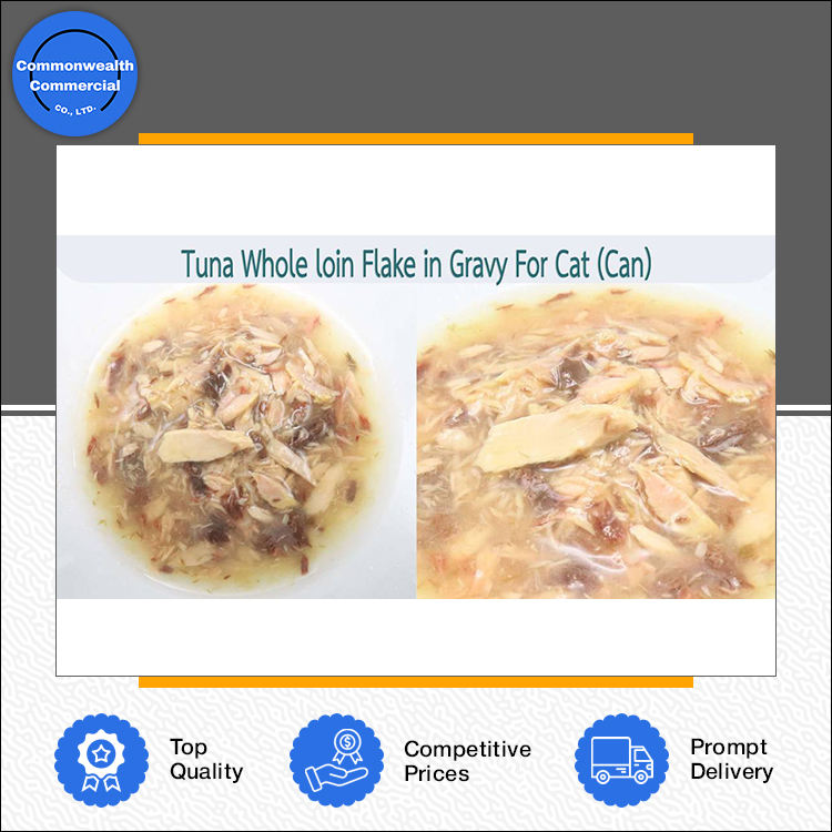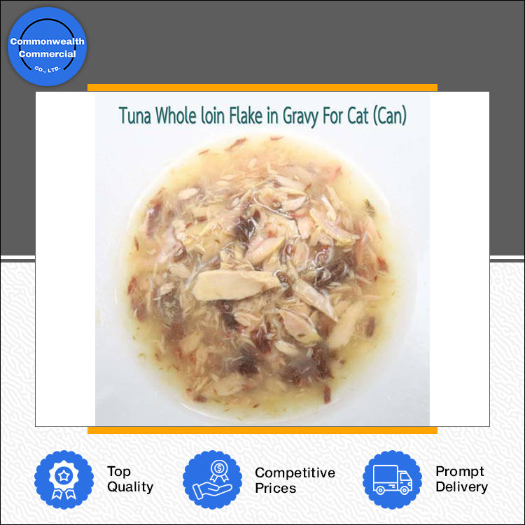 Premium Quality Wet Canned Pet Food Tuna Whole Loin Flakes in Gravy for Cats & Kittens from Top Listed Thailand Origin Seller