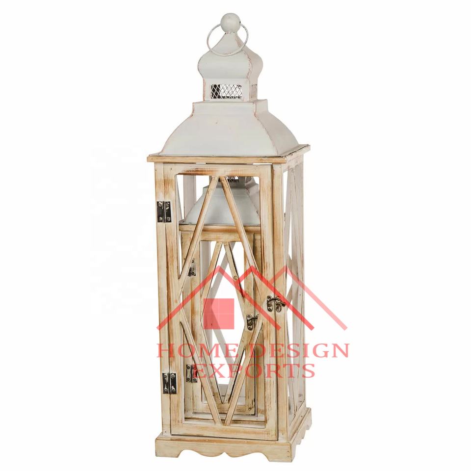 Premium Quality White Wooden Ramadan Kareem Lantern Handmade Indoor Outdoor Hanging Wood Lantern Best Seller Candle Holders