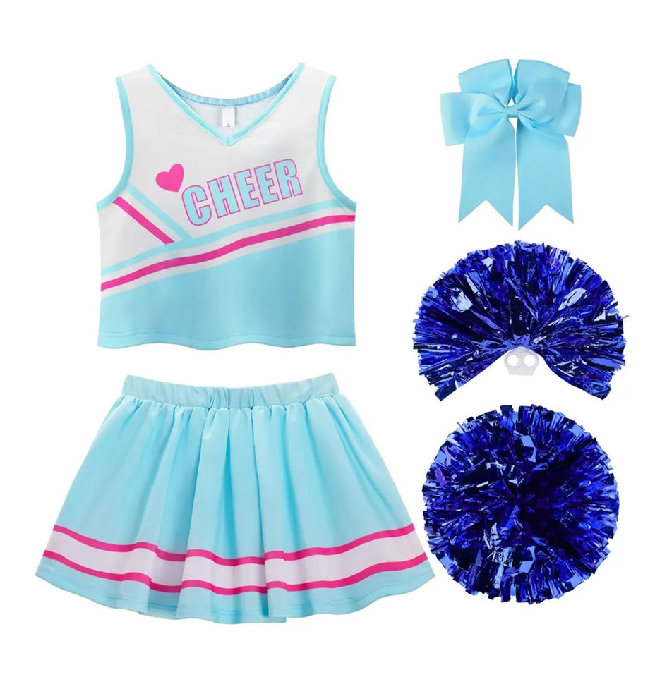 Premium Quality Custom Kids Cheerleading Uniform Crop Top with Rhinestone Rah Rah Mini Skirt Wholesale Made of Spandex Material