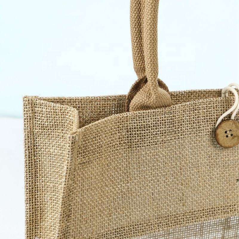 Premium Quality Wholesale Custom Logo Mini Shopping Grocery Jute Bag with Clear Transparent PVC Window Inside for Gifts