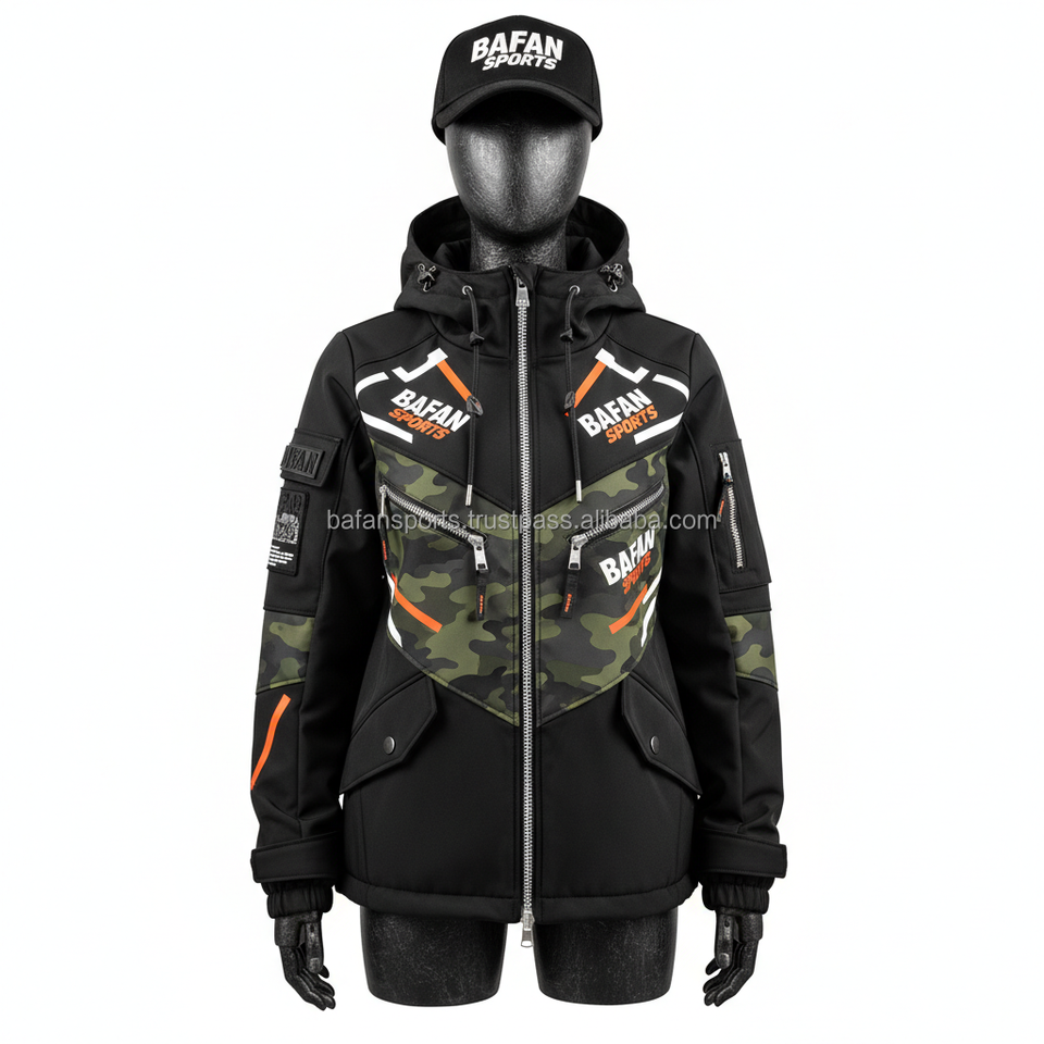 Premium Quality Women Softshell Jacket GSM Camo and Black Fabric Water Resistant Custom Logo Embroidery Women's Softshell Jacket
