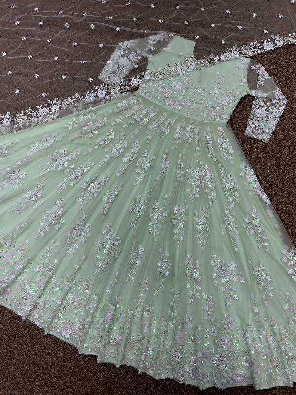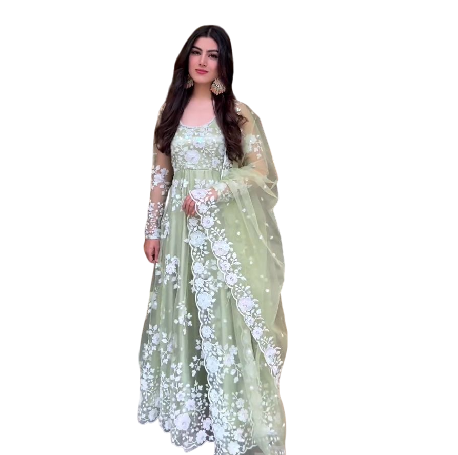Premium Quality Women's Anarkali Suit Ready-Made Indian Wear Butterfly Net Sequence Embroidery Work Bollywood-Inspired Natural
