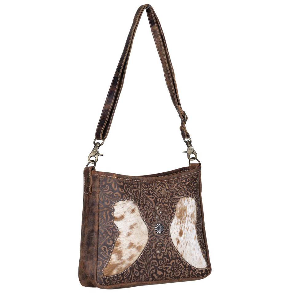 Premium Quality Women's Bohemian Cowboy Fashion Tote Bag New Genuine Cowhide and Western Floral Tooled Canvas PU Handmade