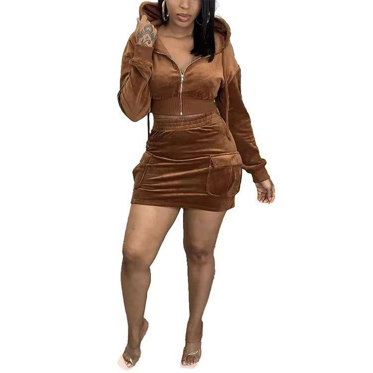 Premium Quality Women's Crop Hoodie Matching Skirt washed Twin Sets Outfit for All weather custom logo Ladies Hoodie and Shorts