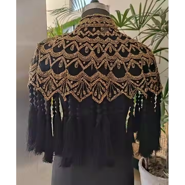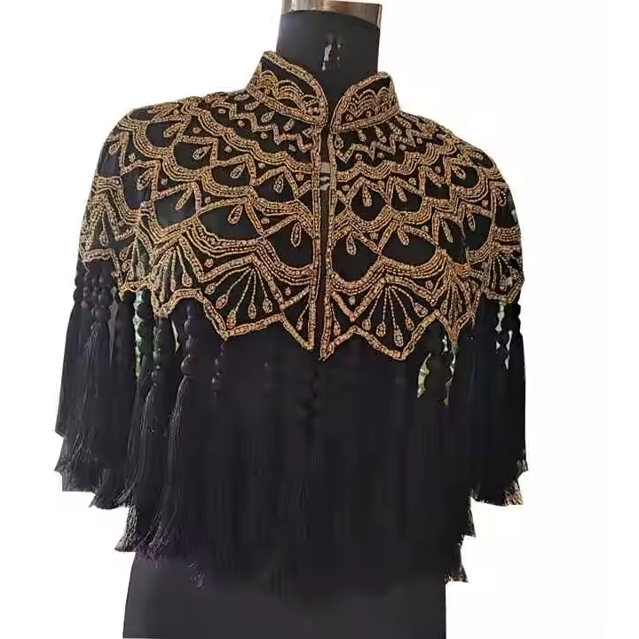 Premium Quality Women's Half Sleeve Satin Poncho Top Vintage Style Geometric Pattern Stylish Handbeaded Sequined Stand